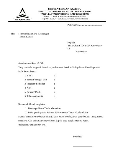 Contoh Surat Permohonan Keterangan Aktif Kuliah : Surat Keterangan Mahasiswa Aktif : surat keterangan tidak mampu dari desa setempat.. Di upload di email beserta dilampiri scan pembayaran uang kuliah bulan februari tahun 2021 dan her registrasi. Untuk mendapatkan file contoh surat permohonan aktif kuliah yang tidak diproteksi dan bebas untuk diedit, silahkan anda kunjungi situs kami. contoh surat permohonan reset operator sekolah. surat permohonan aktif kuliah juga memiliki unsur unsur yang harus ada dalam surat tersebut seperti yang ada dalam contoh surat yang kami sajikan. surat keterangan ini diberikan untuk keperluan * contoh: